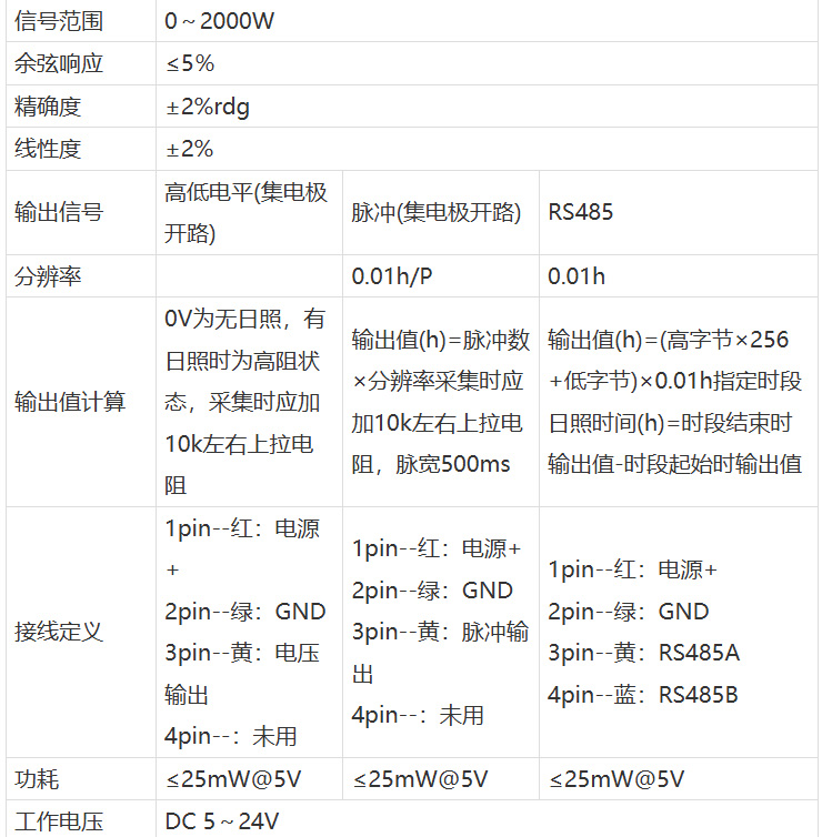 日照时数传感器采用进口传感核心,光学材料窗口,铝合金壳体结构,配防水航插;具有结构坚固、密封性好、使用寿命长、测量精度高、稳定性好,传输距离长、抗外界干扰能力强等特点。可广泛用于气象、环境、农业、科研等各类太阳日照时数测量。